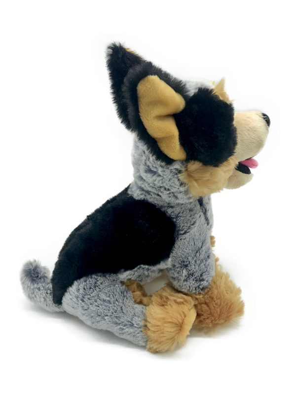 This Blue Heeler is the perfect Aussie mate. With adorable markings, characteristic of one of Australia’s most loved cattle dogs, this farmyard friend will be by your side day and night, always ready for cuddles. At just a puppy-size, with super soft fur, made to a high quality and standard. Approx. 25cm. Recommended for ages 3 & up.