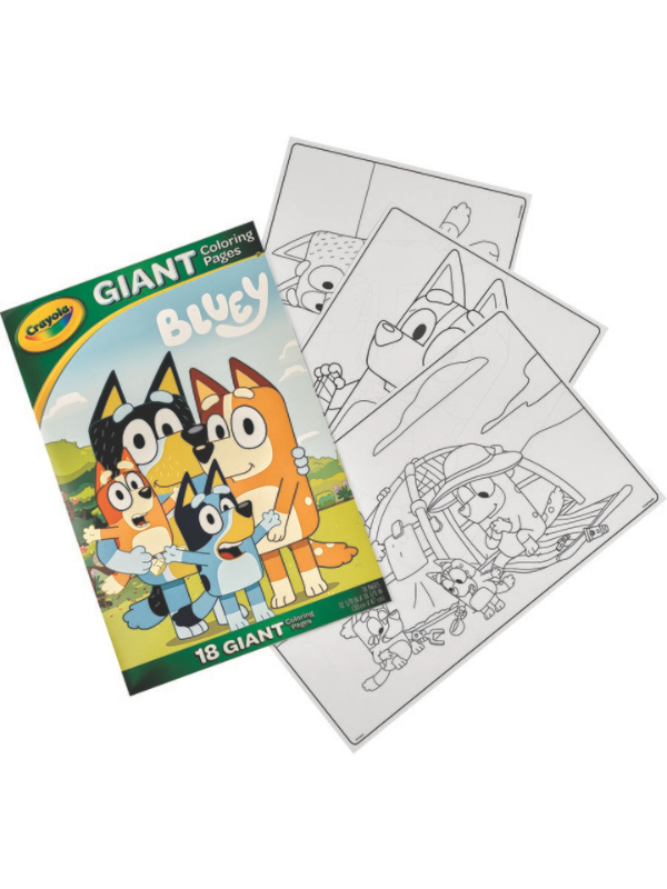 Crayola Giant Colouring Pages featuring Bluey lets kids colour Bluey, Bingo, Bandit and other characters from the popular television show! This collection features 18 supersized pages of adventure scenes from this popular cartoon. These huge pages are 30 x 47cm each, giving kids plenty of extra room to get creative! Kids can create their own poster art as the loose pages can easily be hung on bedroom walls! The convenient folder style packaging holds and protects used and unused pages. Perfect for any gifting occasion.